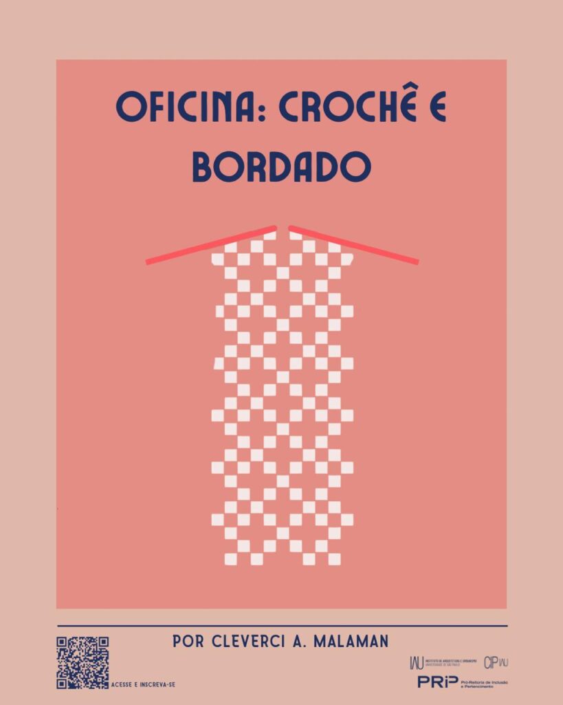 Realizada entre agosto e novembro de 2025, a Oficina de Crochê e Bordado integrou as ações contempladas pelo Edital PRIP 01/24 – Bem-Estar e Pertencimento para Servidores Técnico-Administrativos. A atividade foi inicialmente ofertada às servidoras e servidores do IAU-USP, mas logo se expandiu, reunindo também docentes, estudantes de graduação e pós-graduação, fortalecendo o convívio e a troca entre diferentes segmentos da comunidade.